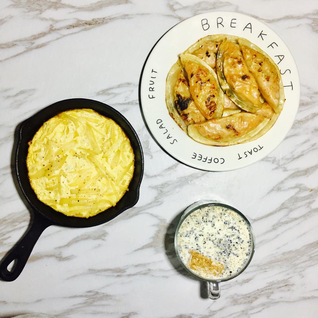 黑芝麻牛奶麦片 泡菜粉丝煎饺
