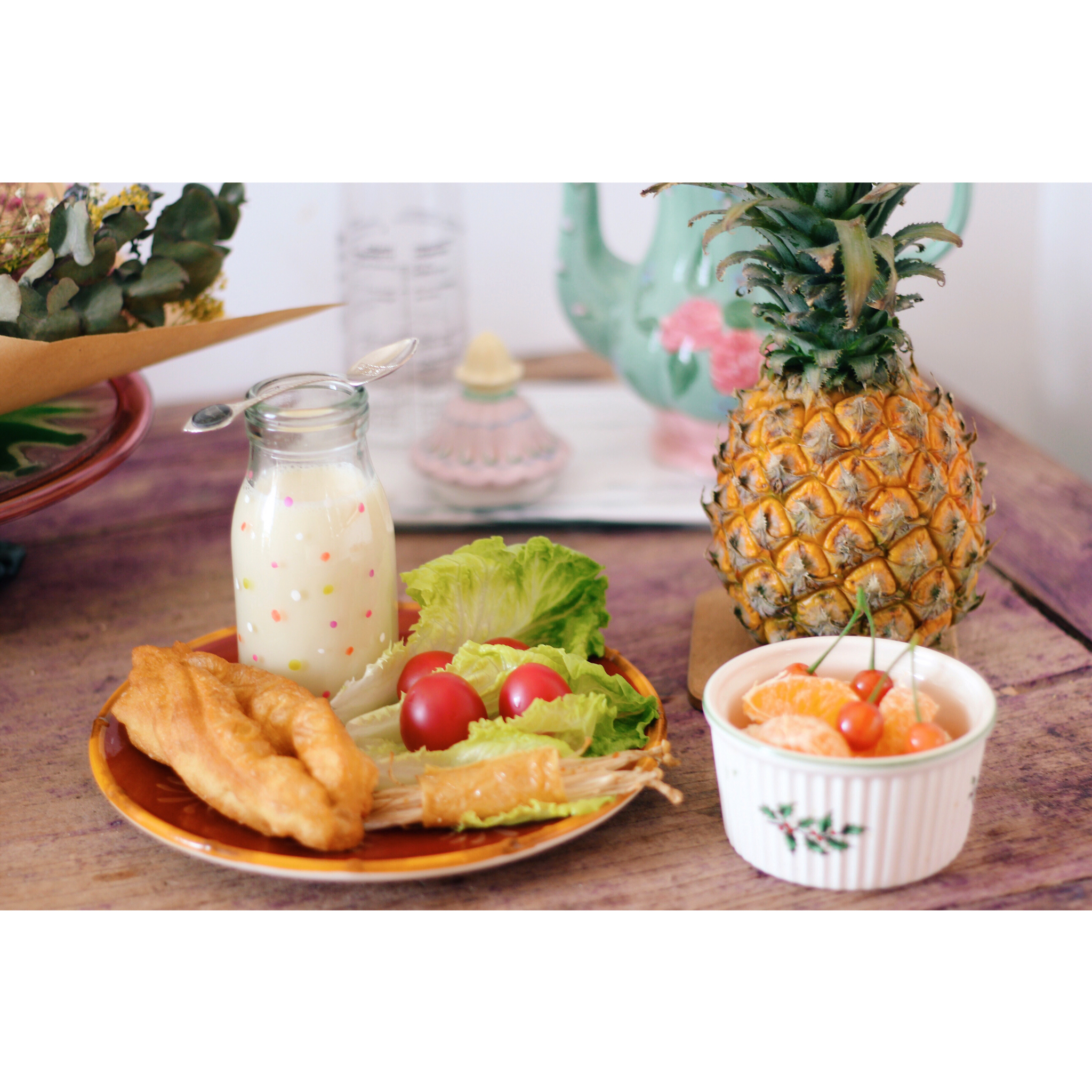 今天的早餐 终于发到今天了 为了安抚我受伤的肚子 我感觉喝个红枣豆浆比较好 虽然不太适合吃蕃茄?凉性?但是我炸完油条实在...