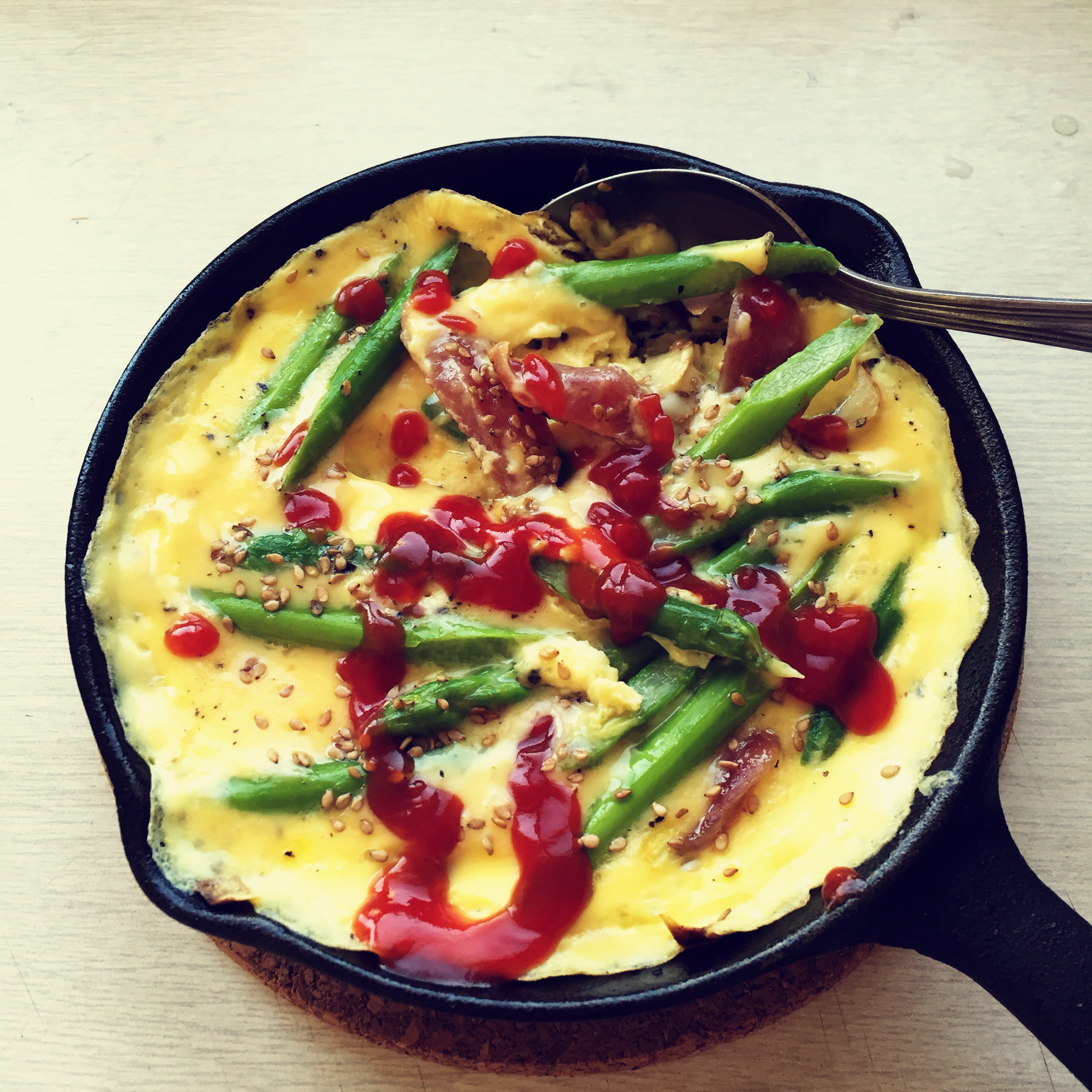 虾仁忘记化冻了,临时拿腊肠代替。尝了口决定加点番茄酱,不错!😆
