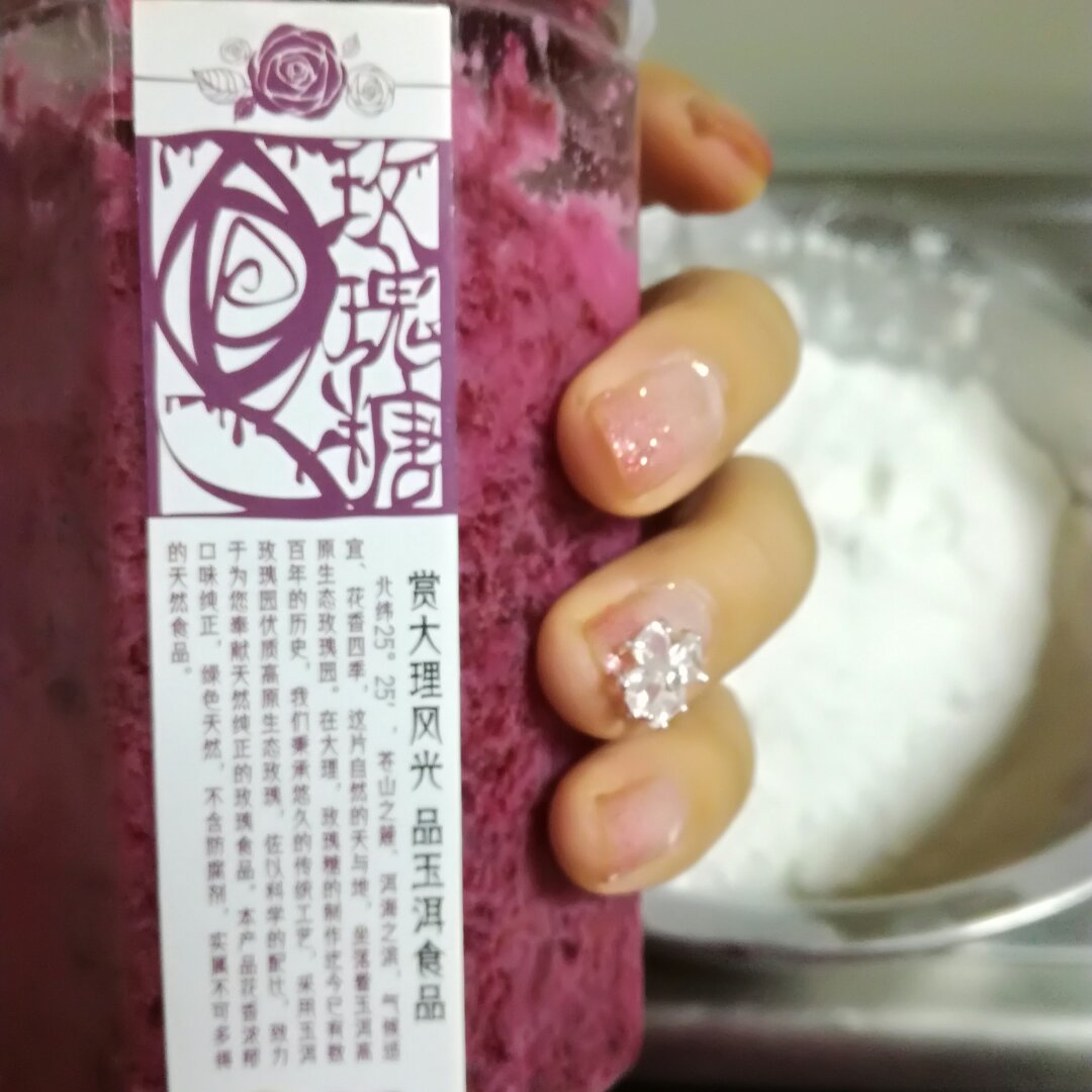 我直接用的现成的玫瑰酱加熟糯米粉拌的馅