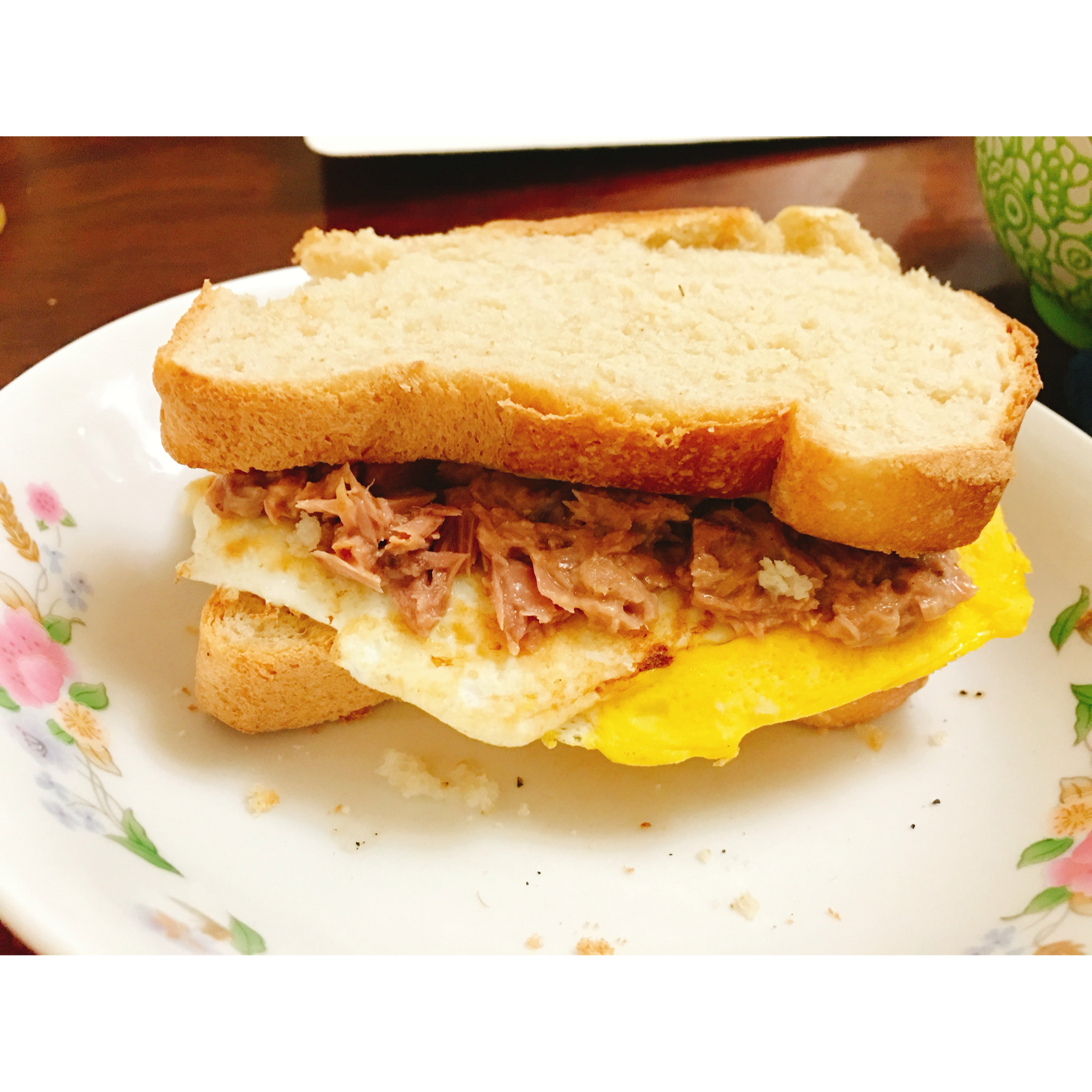 早晨打了罐金枪鱼,没吃完,冰箱里还有米饭,就做了个这个。