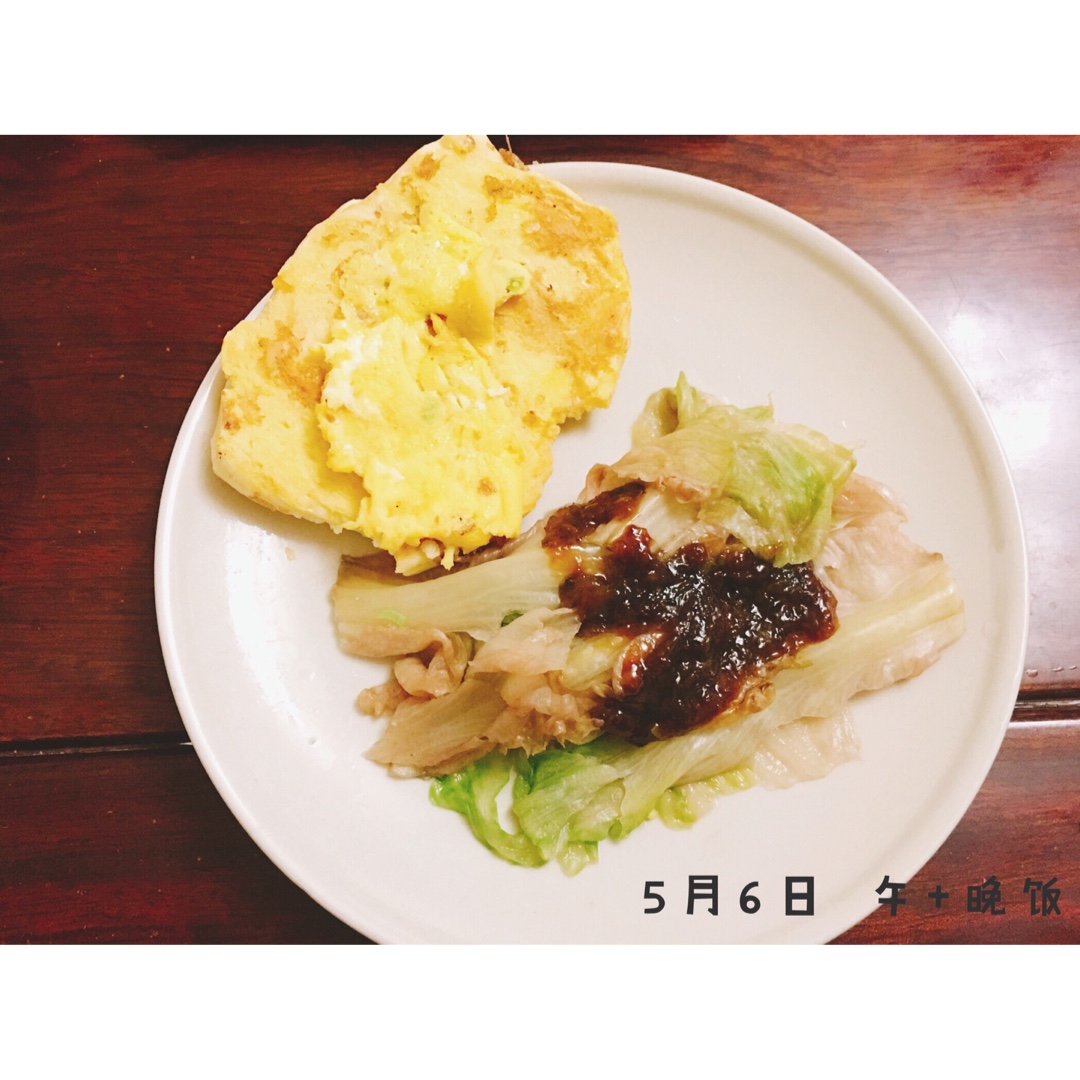 本来想考科二开心的做个鱼香鸡丝吃,结果没过,只有吃菜心情🙁蚝油生菜+鸡蛋馒头片。