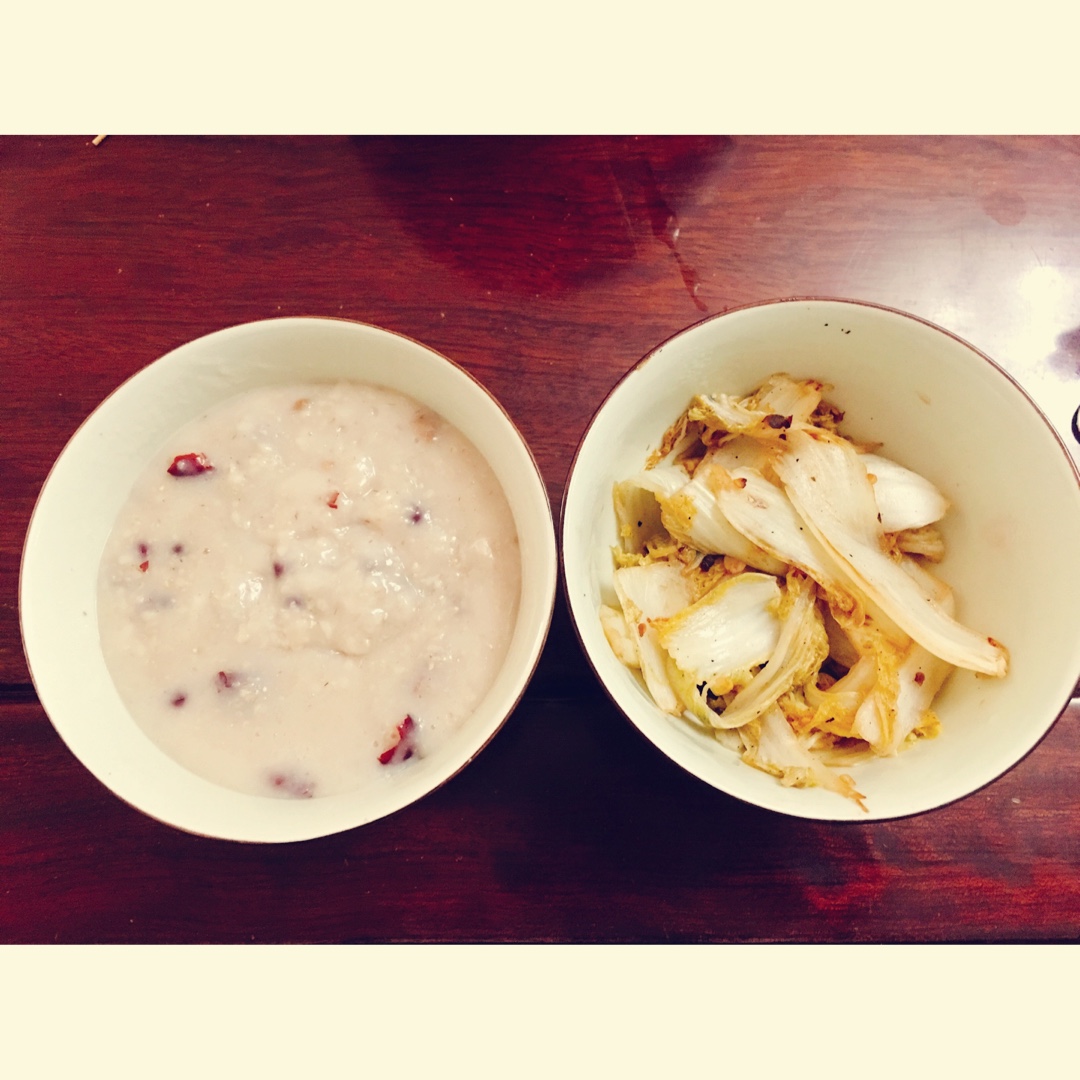 燕麦红豆红枣一起煮+酸辣娃娃菜