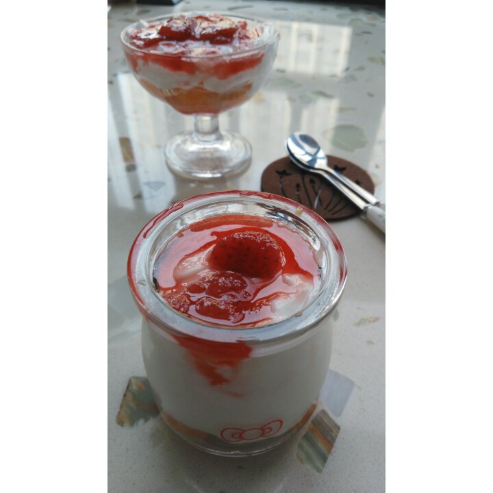 太好吃啦😍再也不用操心拌酸奶的蜂蜜是真是假了,草莓酱拌自制...