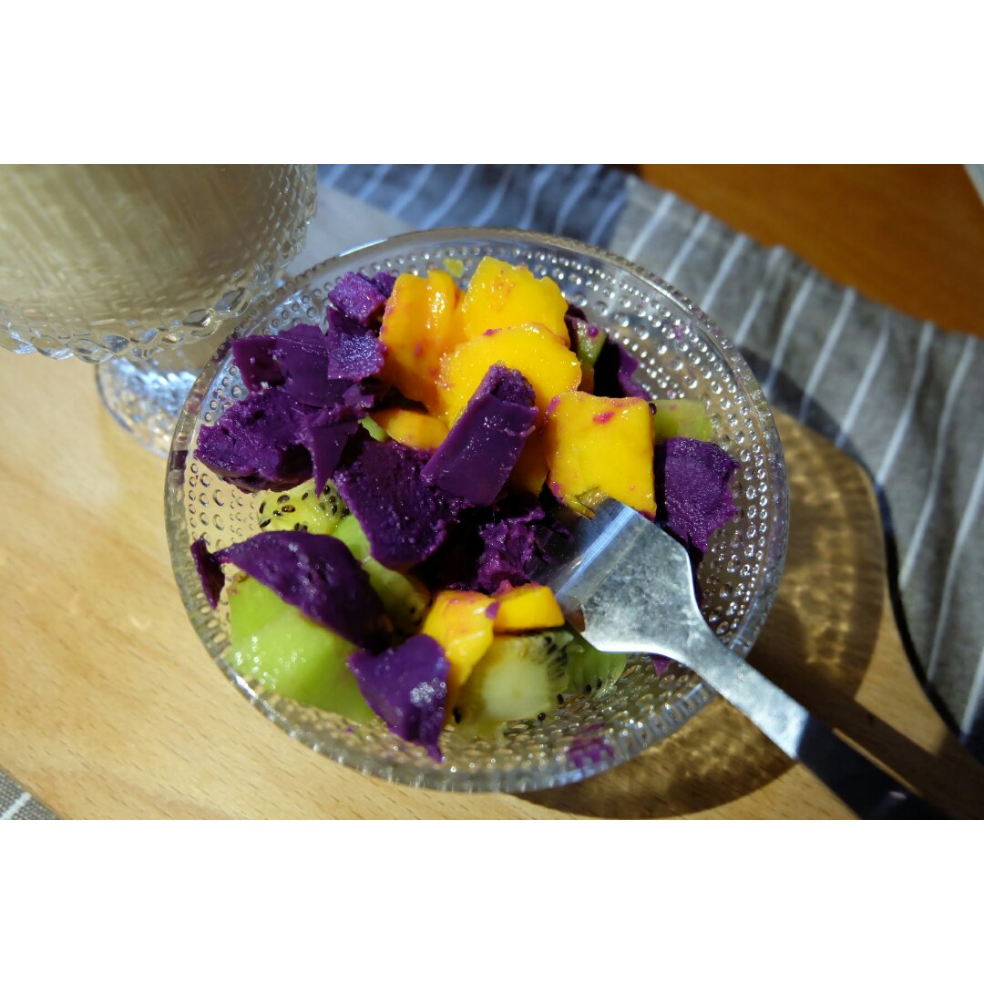奶茶and猕猴桃芒果拌紫薯