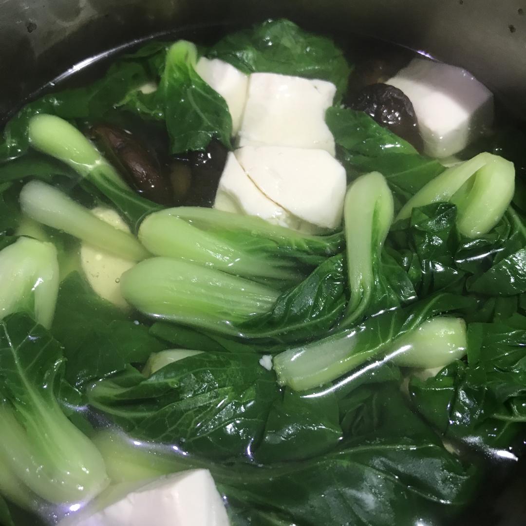 青菜豆腐汤,加了几朵香菇做点缀