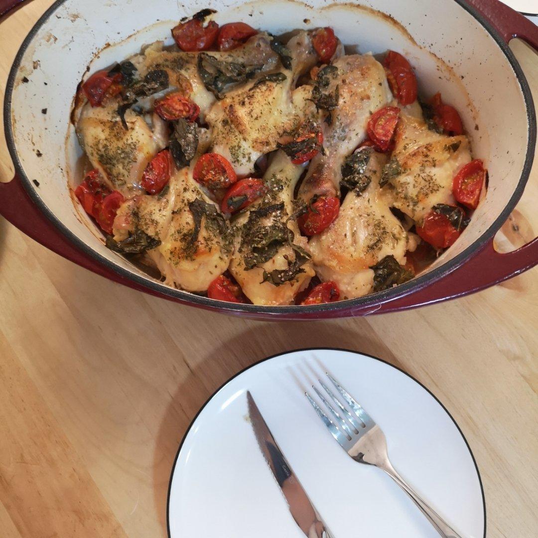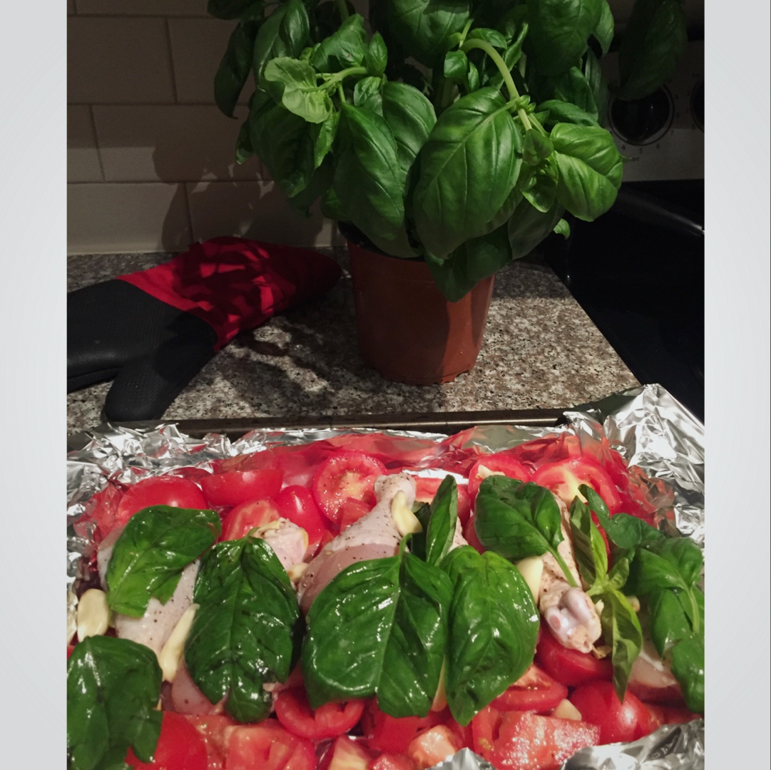 番茄罗勒烤鸡腿..