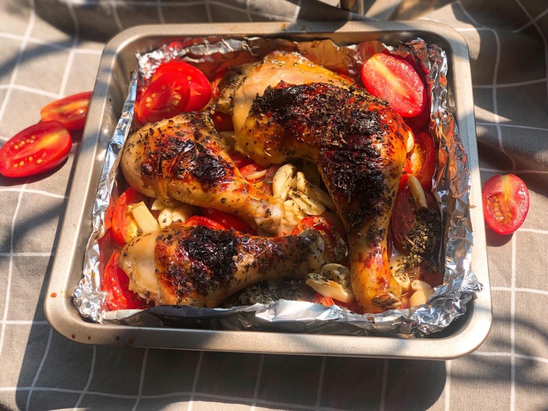 #香蒜罗勒番茄烤鸡腿#