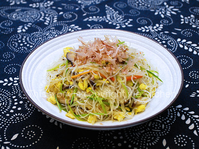 另一种食材和做法的【健康魔芋丝米粉】,用的材料是:米粉、白色魔芋丝、鸡蛋、雪豆丝、香菇丝、洋葱丝、胡萝卜丝以及木鱼花,也...