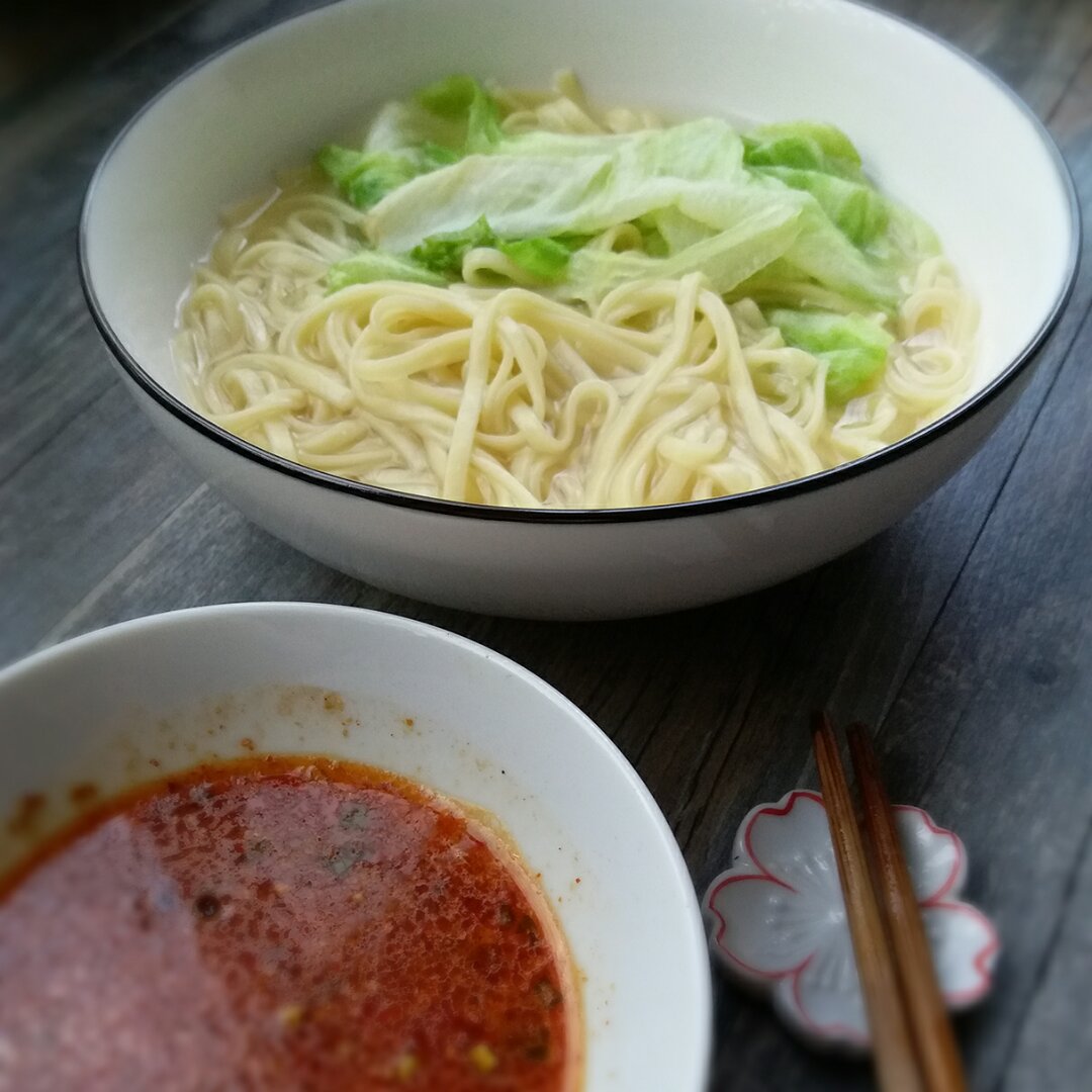 实在不想做饭了,给儿子要了肯德基,小同学要求吃福冈的拉面,这次煮了一袋过桥干...