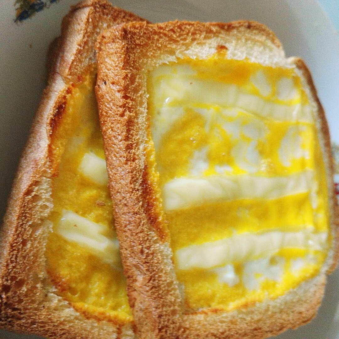 两层面包叠一起 上面一层中间挖空 放一些芝士