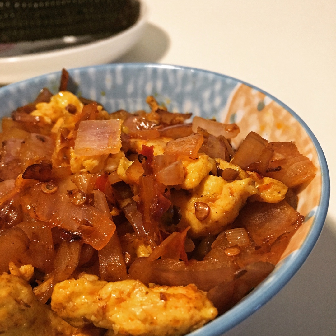 用了两个鸡蛋 用了一勺郫县豆瓣炒的