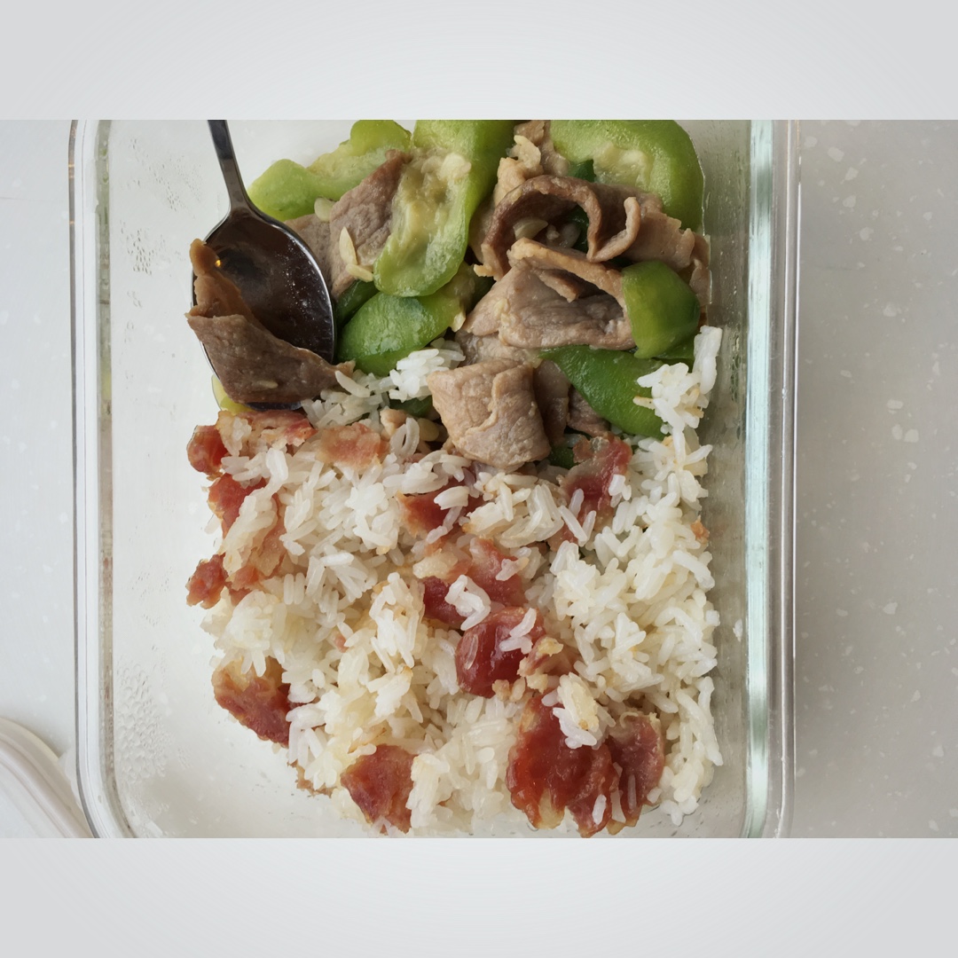 腊肠蒸饭+丝瓜炒肉