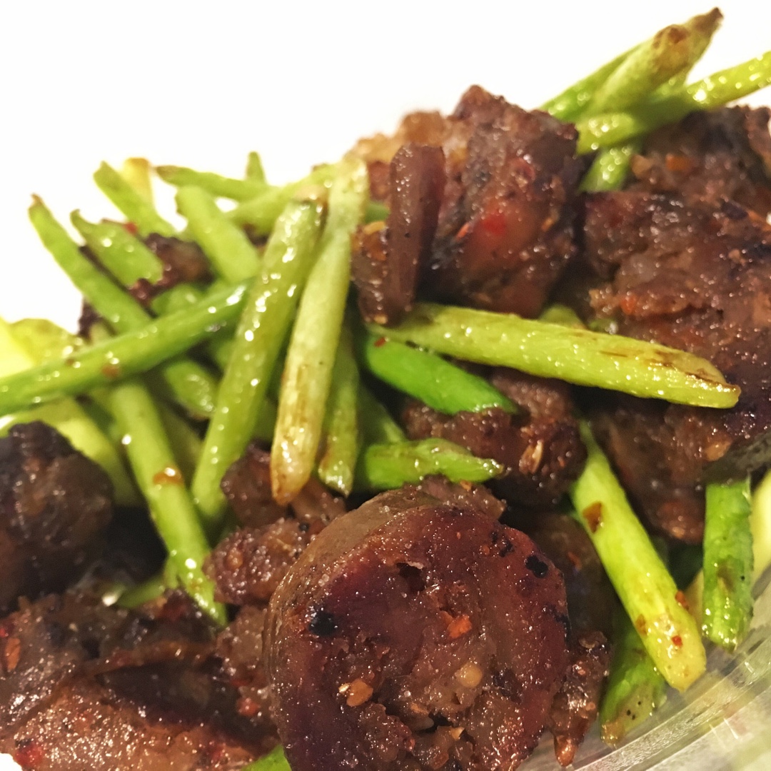 没有腊肉换成了香肠 炒的时候还是加了油