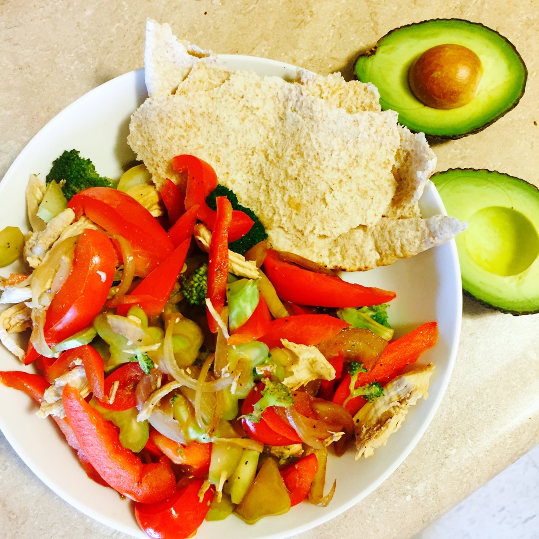 彩椒鸡胸西兰花洋葱牛油果配全麦饼
