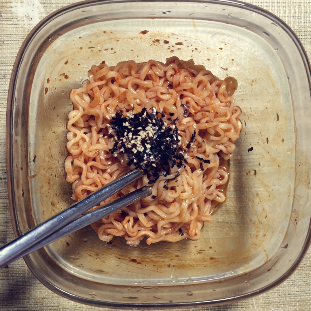 韩国辣泡面 真的快辣疯了,放了3/4料包 我真的吃不了辣 来个酸奶解下辣
