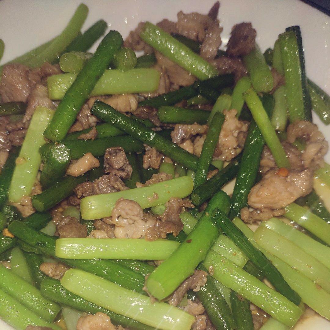 #蒜薹肉丝#