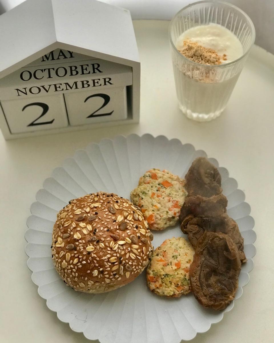 燕麦小面包、鸡胸肉饼、卤牛腱、花生粉酸奶