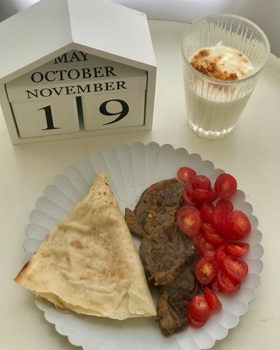 全麦卷饼、卤牛腱、圣女果、酸奶