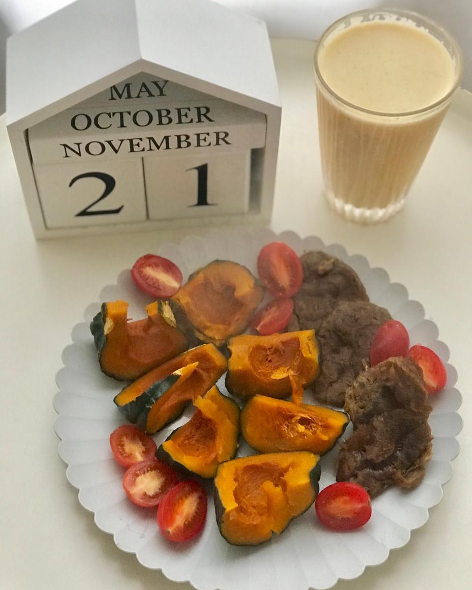 贝贝南瓜🎃、卤牛腱、圣女果、红枣豆浆