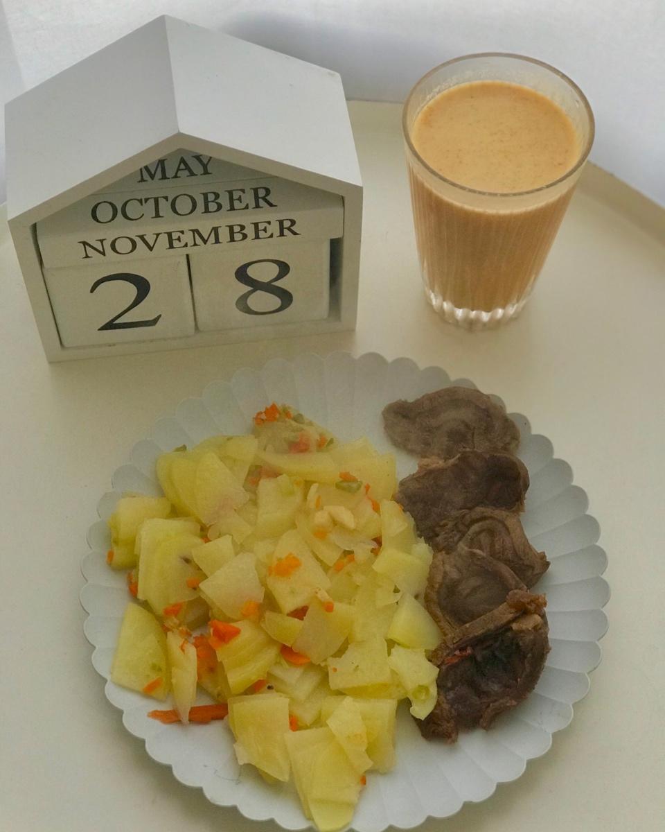 土豆🥔沙拉、卤牛腱、枸杞豆浆