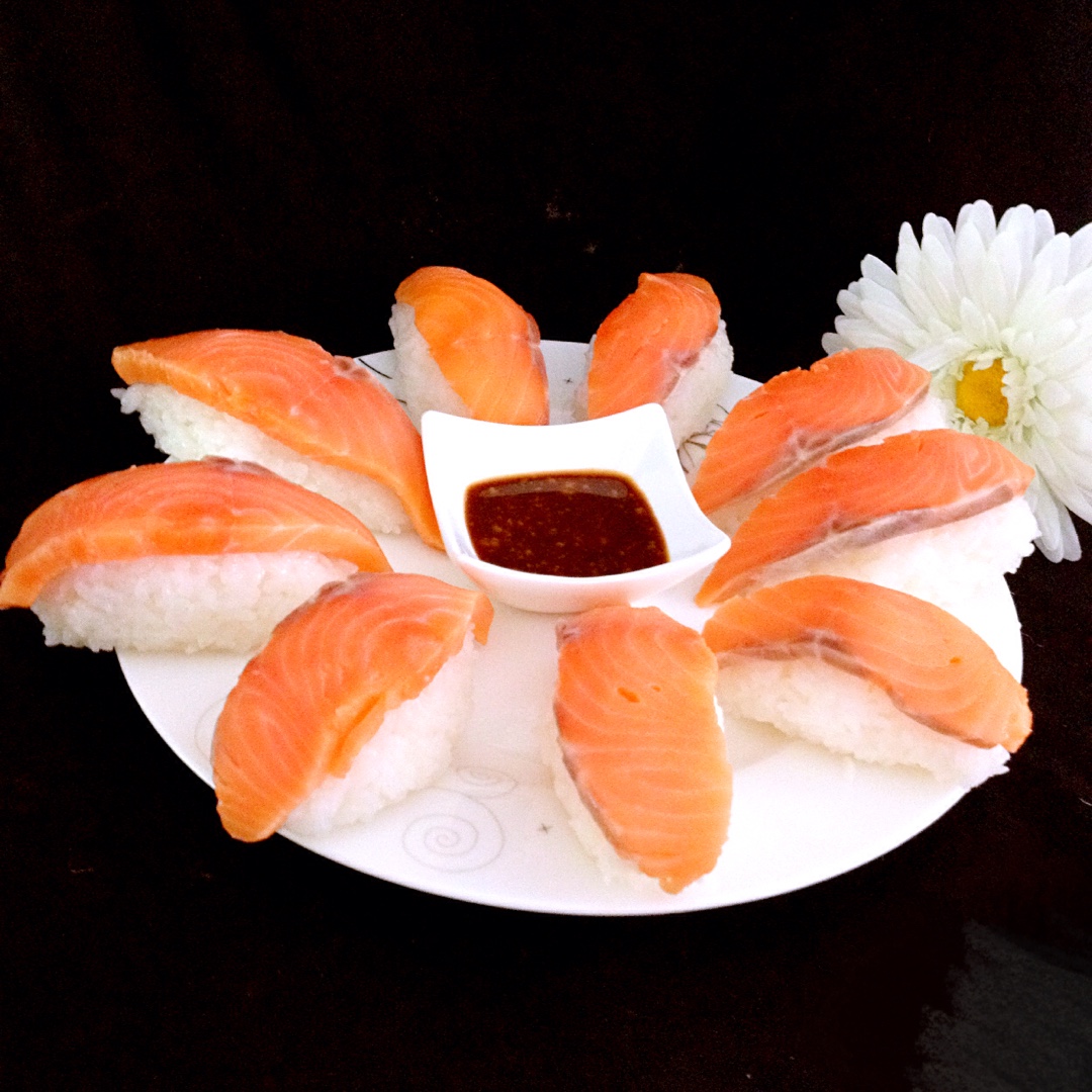 三文鱼手握寿司,717抢了好多易果的生鲜,慢慢消耗吧。