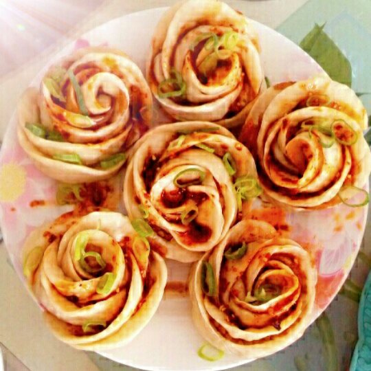 #玫瑰肉馅馒头#