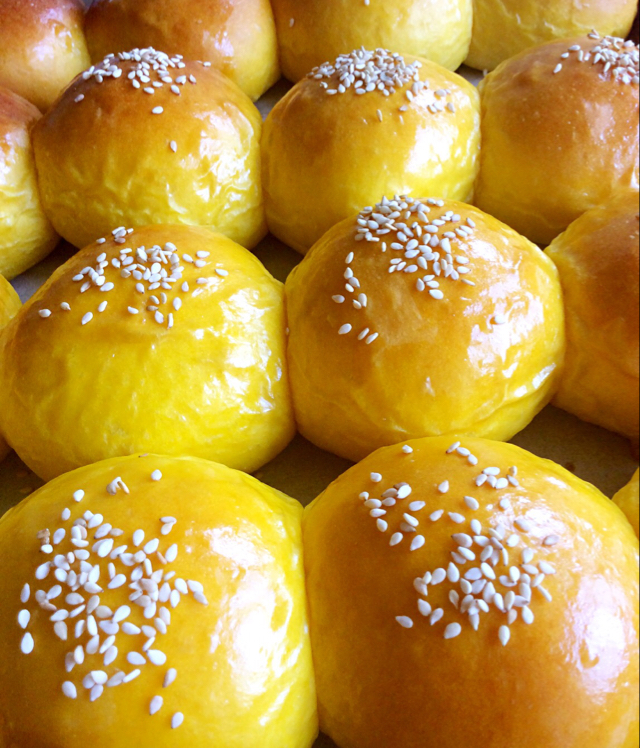 心仪很久的一款面包,天太热了一直没做,今天买菜顺便买了个南瓜,终于做了,揉好面忙着做饭,忘记做酥粒了,只能将就刷蛋液撒芝...
