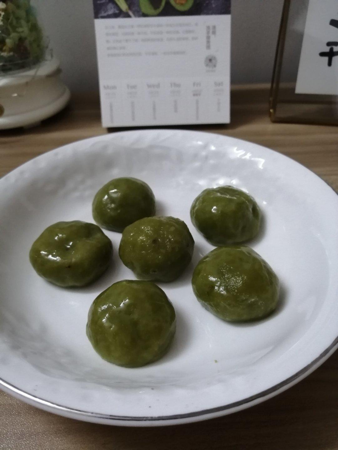 斑斓叶榨汁,替代了配方中的艾草汁。鲜笋辣肠豆干梅干菜馅好吃死了。太喜欢咯。