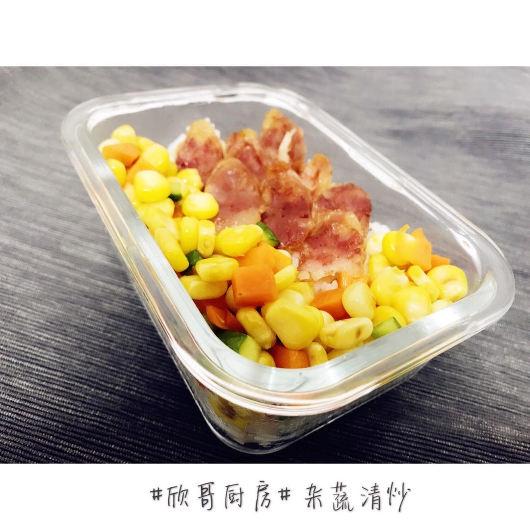 玉米红萝卜青瓜一起炒。