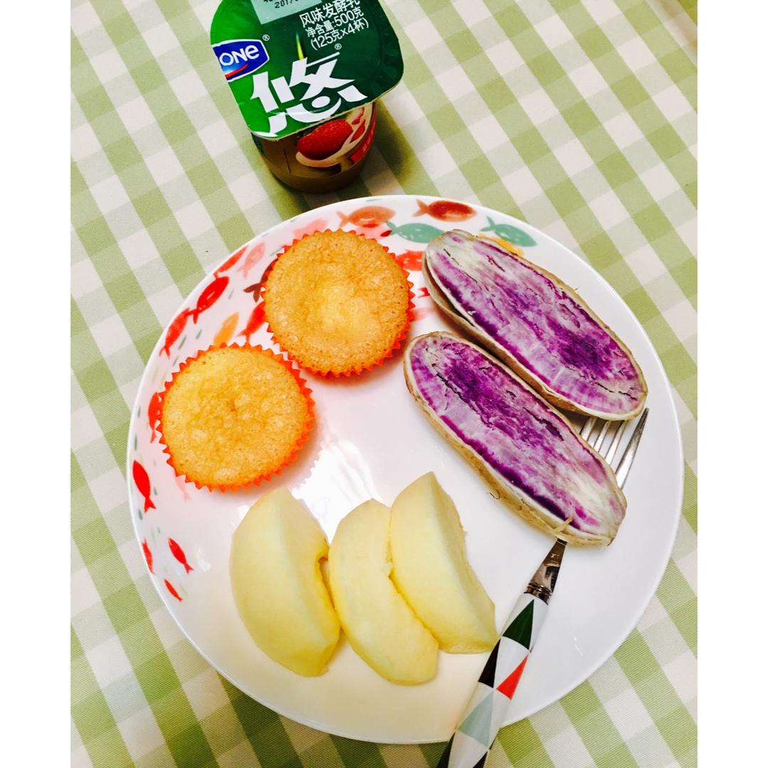 早安!放假了也要偶尔刷个早餐~美腻的紫薯➕戚风蛋糕➕苹果➕酸奶