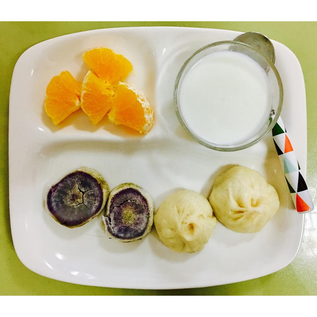 早安!小肉包➕紫薯➕酸奶➕甜橙。谢谢亲们的关注(^_^)