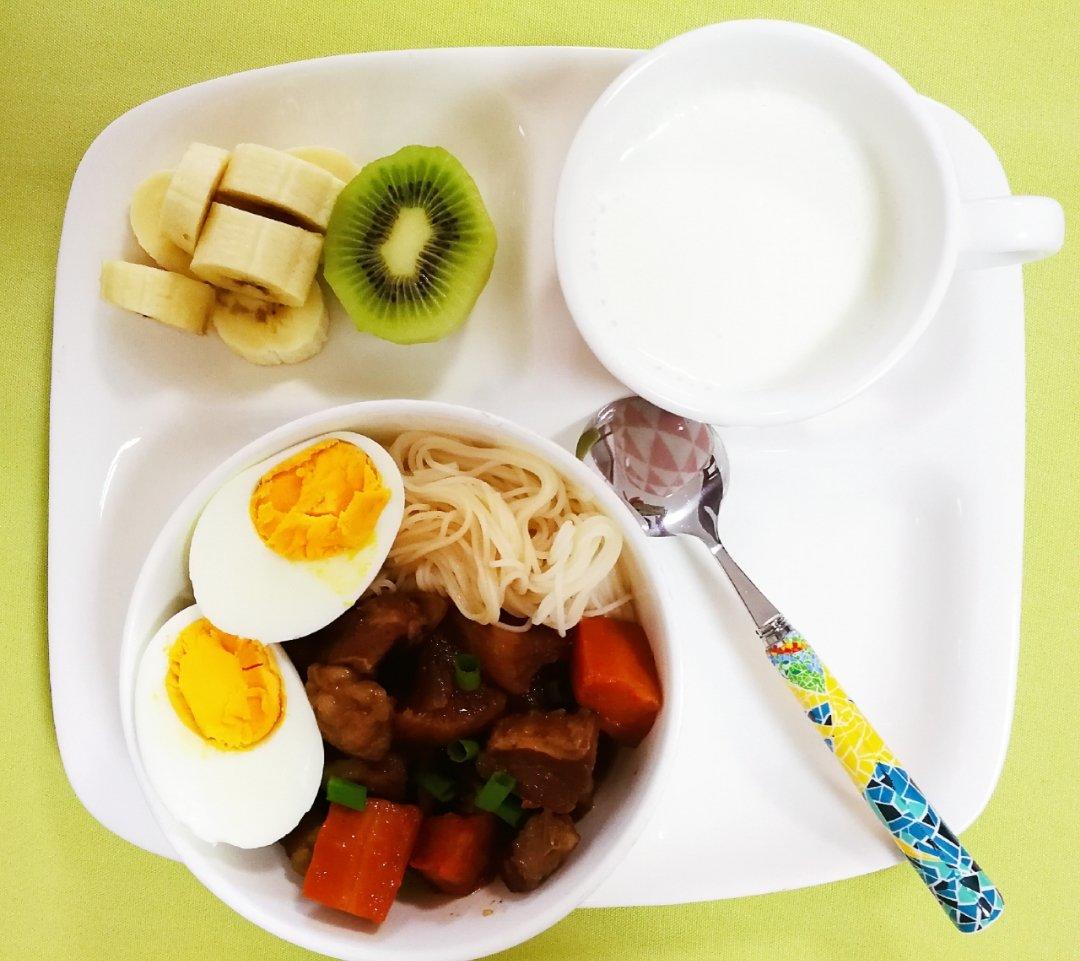 萝卜牛腩面、水煮蛋、牛奶、水果~