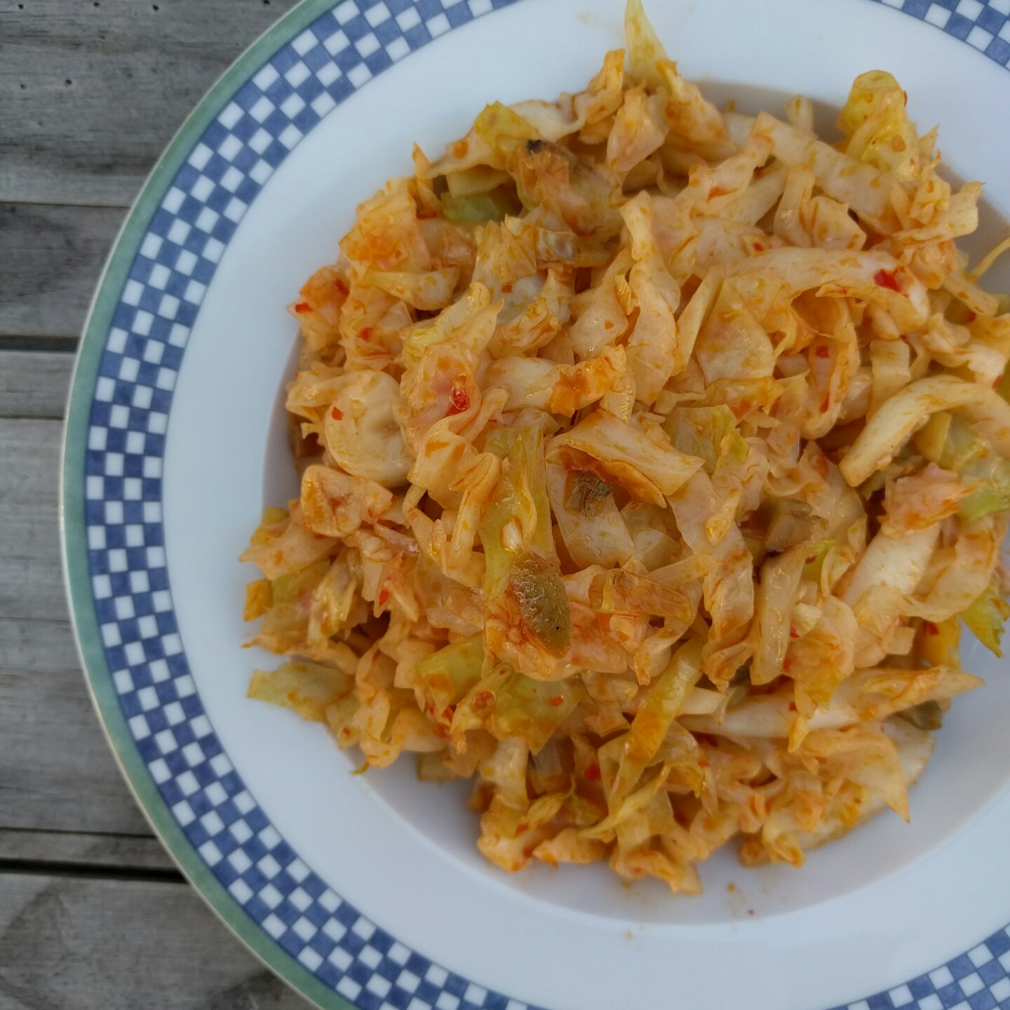炒包菜, 加了一点榨菜丝和蒜蓉辣椒酱,一点点辣。