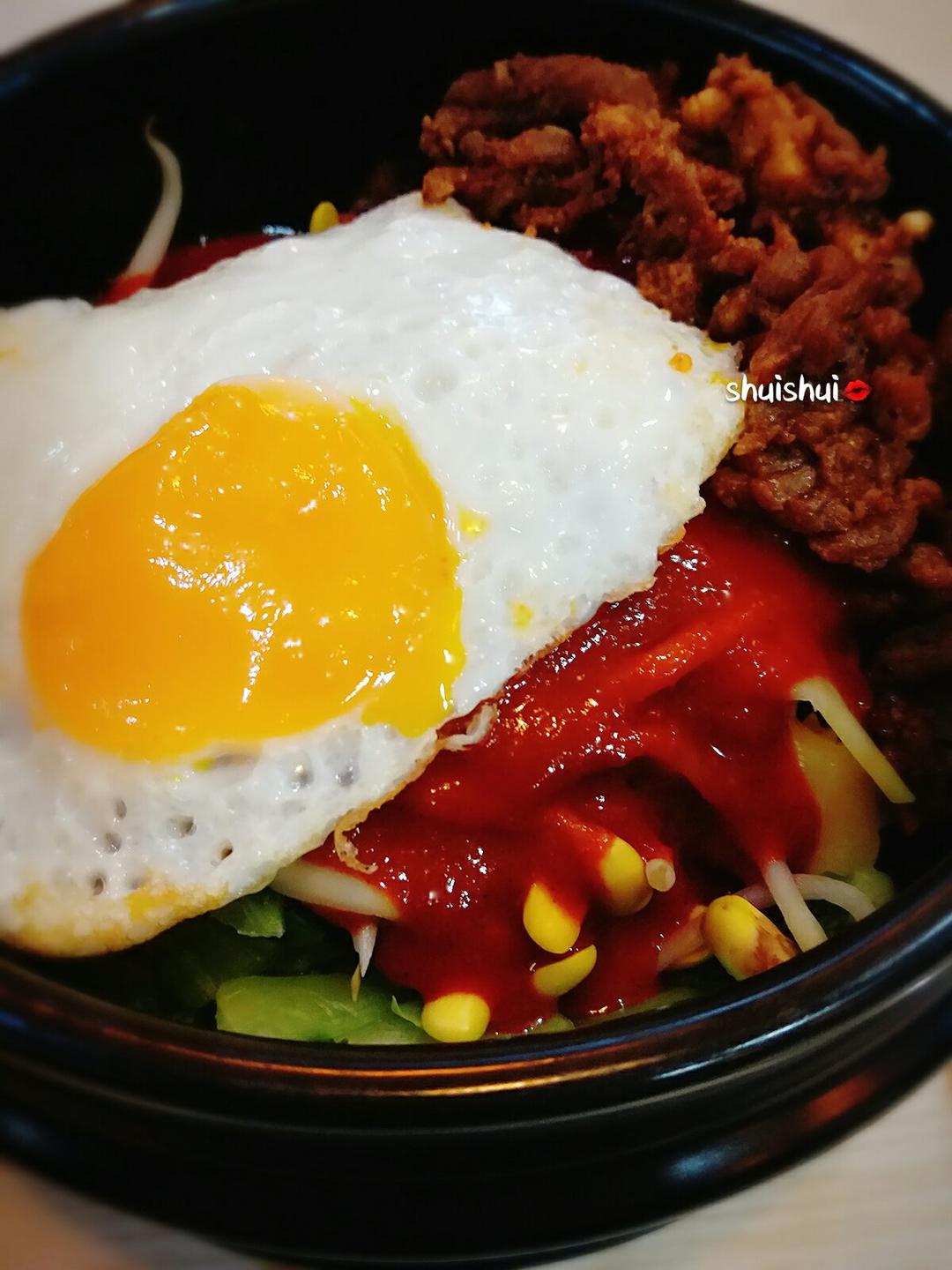 等人等到午饭时间还没等到,一个人只能吃吃拌饭了,要几个菜都不好意思一个人坐着吃...