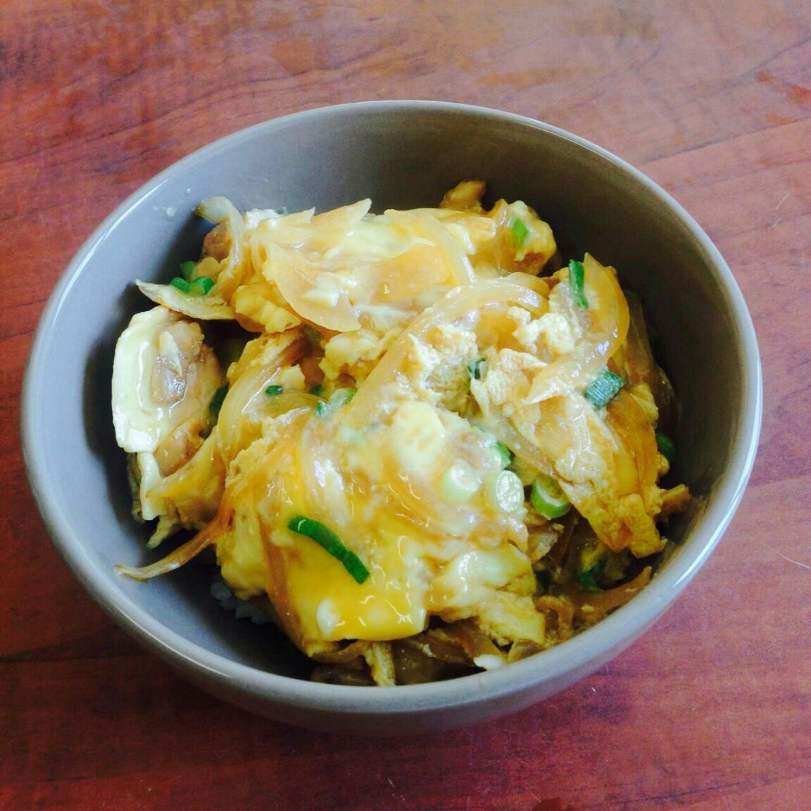 今天的午餐是鸡肉亲子盖饭,其实和日式牛肉盖饭是一样的做法,最后多加了一层半固体状的鸡蛋,汤...