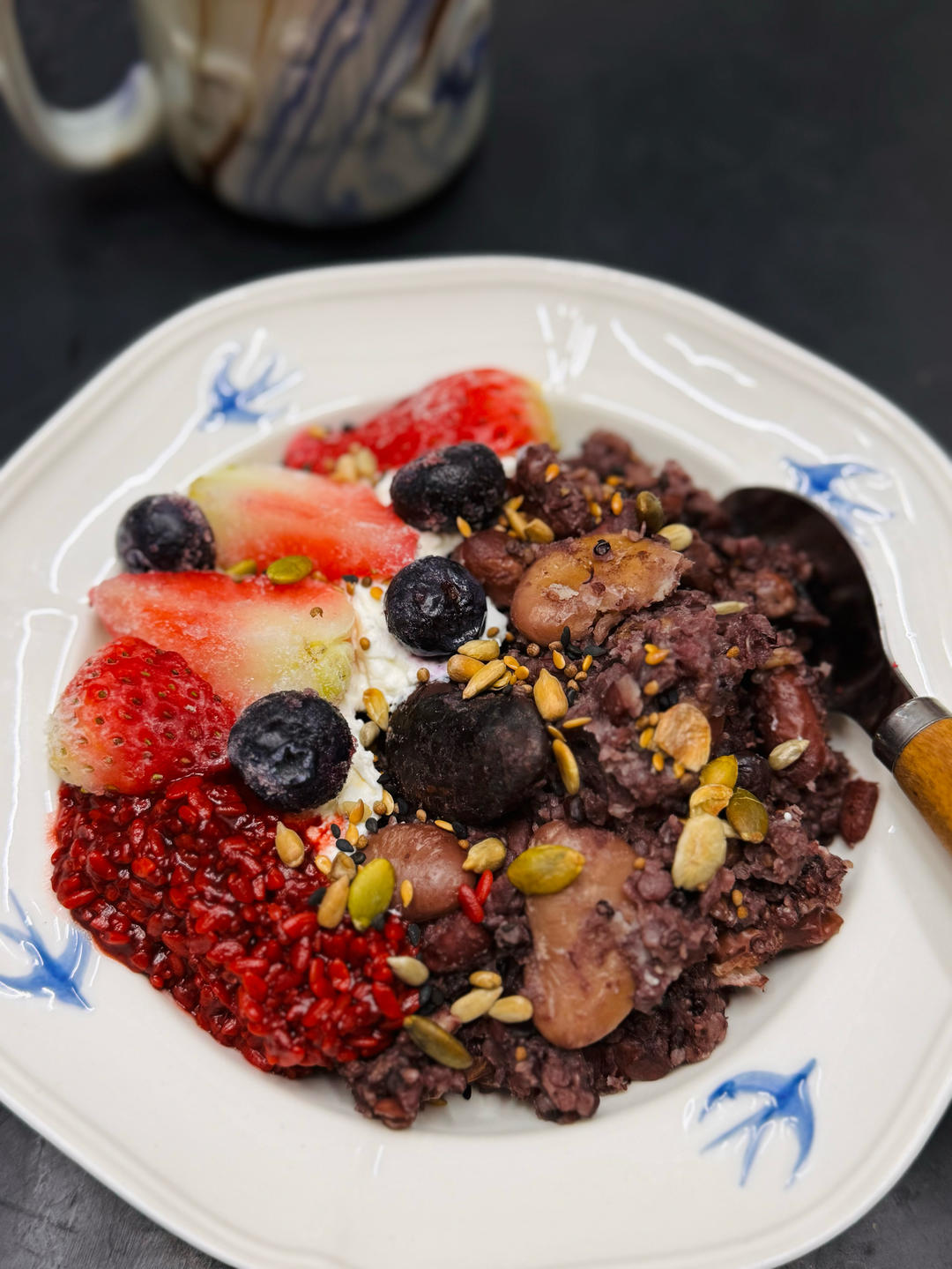 早餐吃豆子饭酸奶酒酿碗🍓🫐