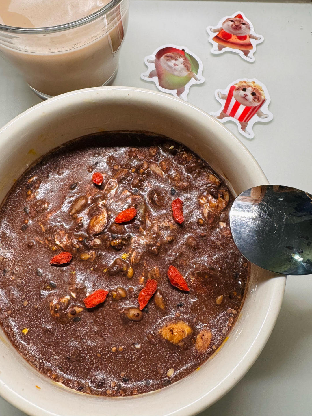 早餐吃南瓜蛋糕黑巧脆皮酸奶碗🎃🍰+可可牛奶🍫🥛
