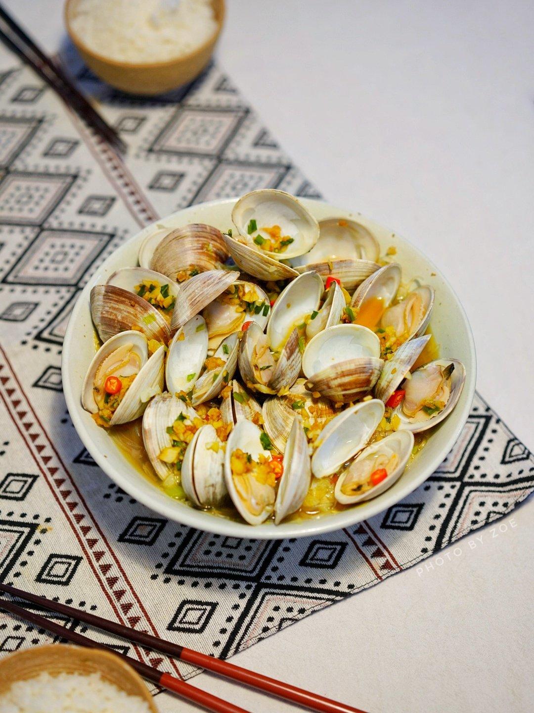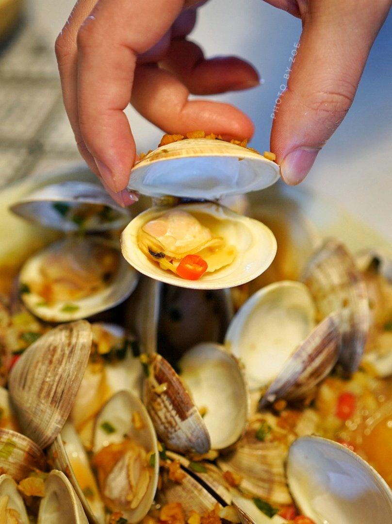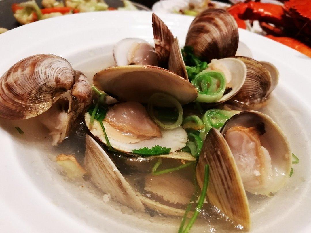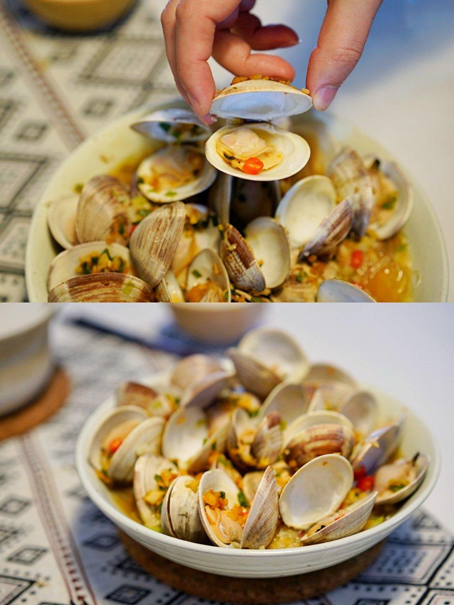 第一次做,水煮让文蛤张开,可以一张开就捞出来,不然肉有点老哦!