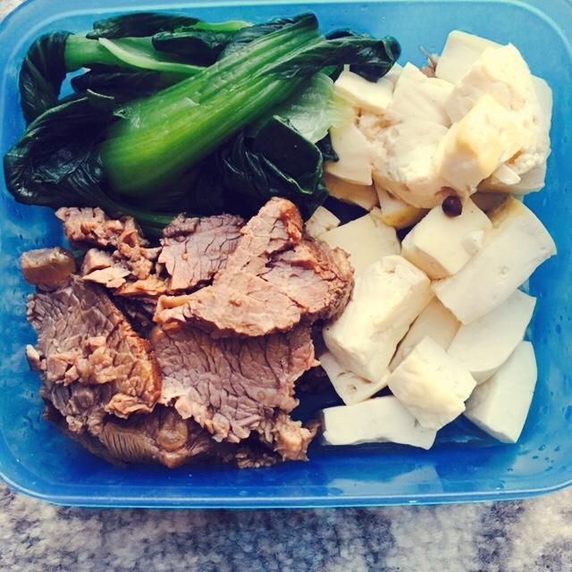 前段时间吃得太油腻,来个减脂餐。卤牛肉,无油青菜豆腐。健康!