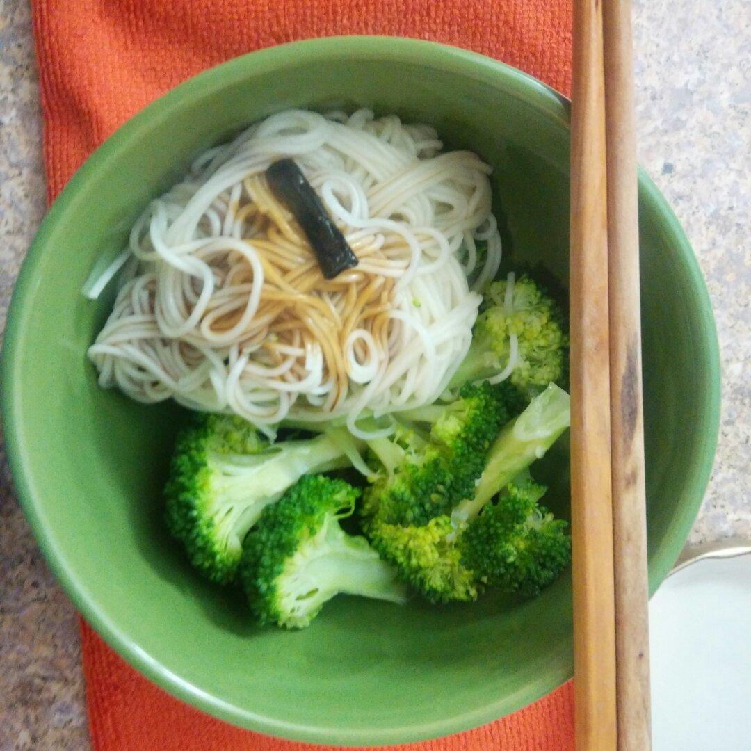 葱油拌面,水煮西兰花。