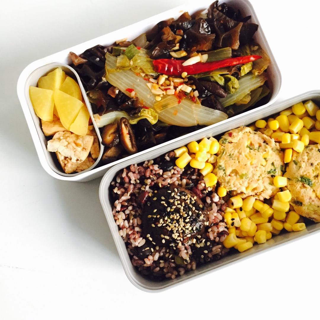 今日便当 杂粮饭+金枪鱼饼+酸辣木耳白菜+自渍豆腐萝卜 吼吼吼 今天效率奇高 做完了好多to do list里的事 #午...