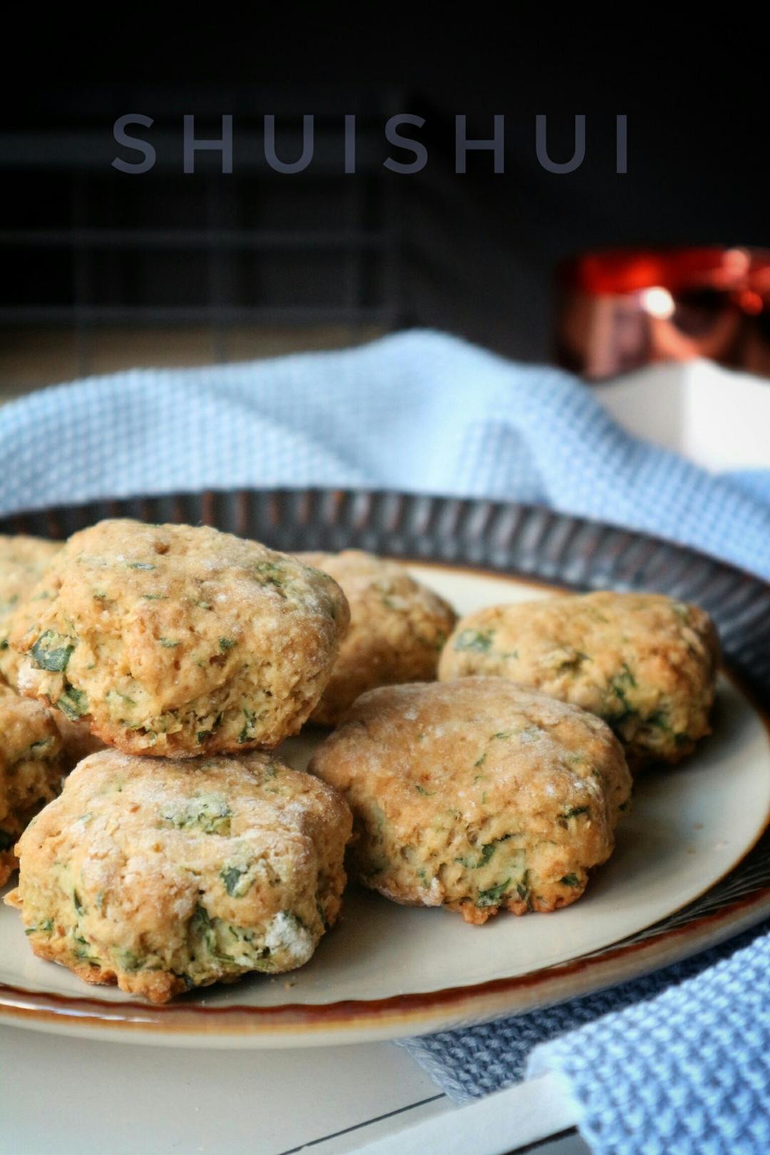 早午饭吃的太早,烤几块香葱培根司康垫垫。减了糖...
