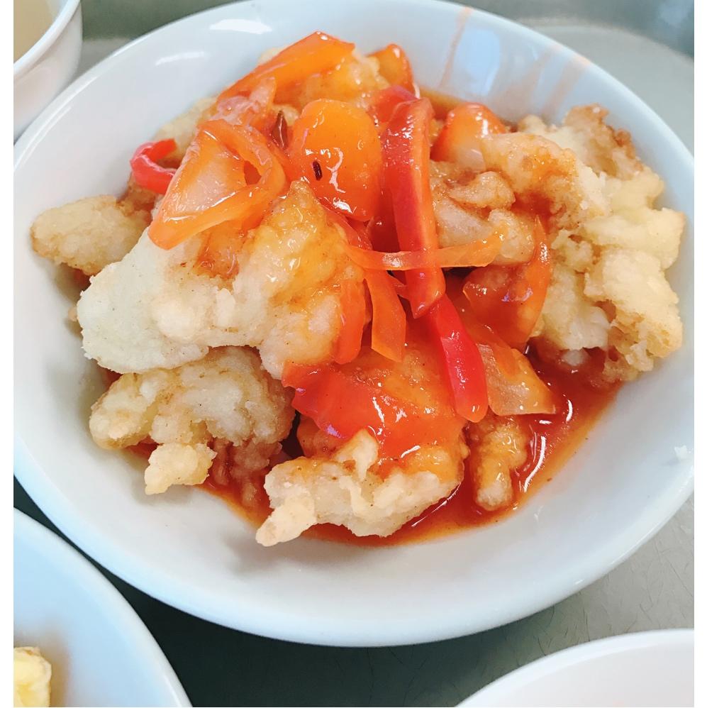 酸甜咕噜鱼 龙利鱼块油里炸 浇上酸甜酱和酸甜酱浸酿的辣椒丝 超美味
