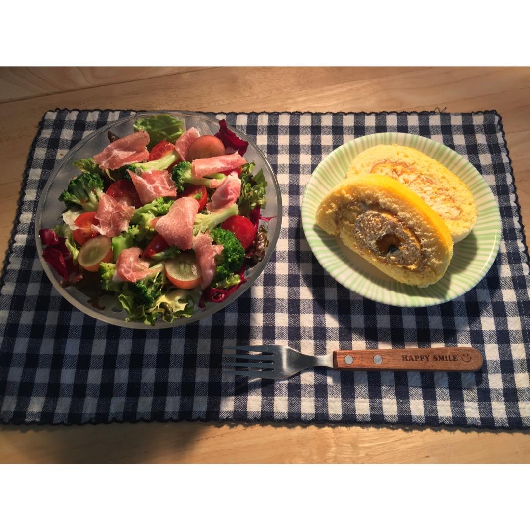 【生火腿红提番茄意式蔬菜沙拉+北海道南瓜奶油蛋糕卷】