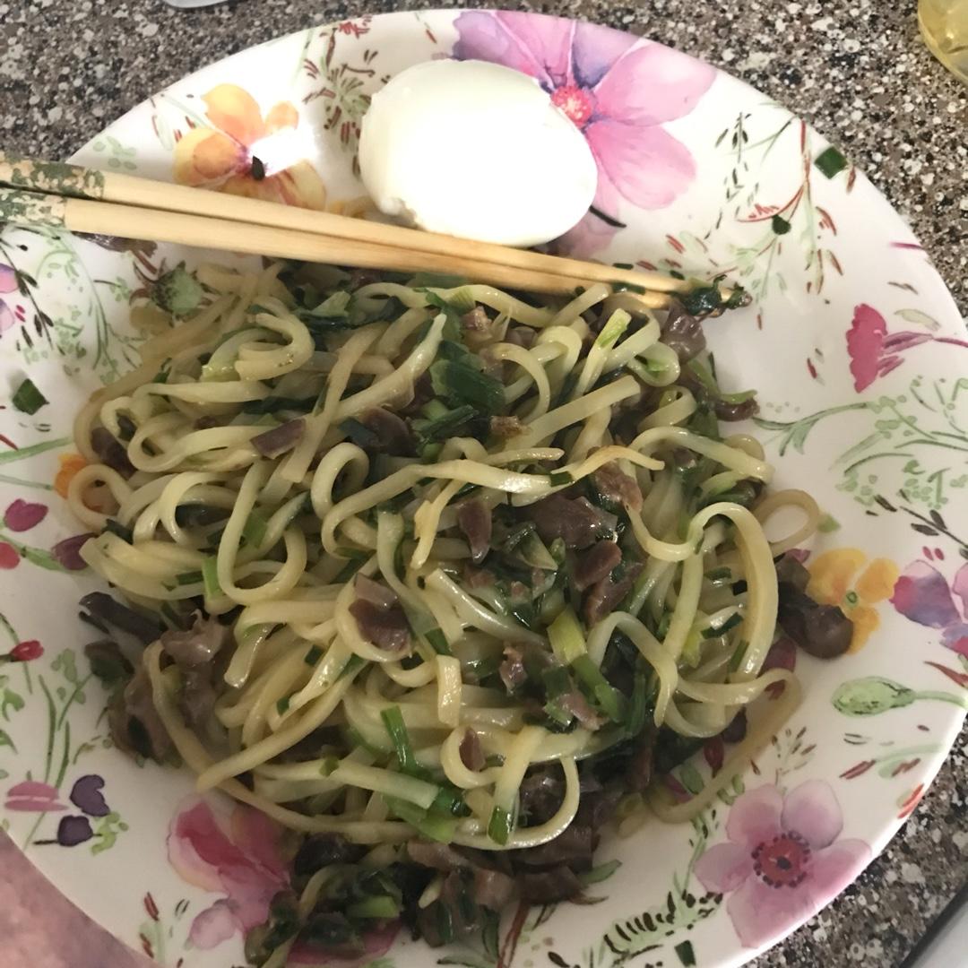 今天生日了,妈妈坚持一定要我吃鸡蛋面条,哈哈哈早上上班要迟到所以前一晚提前准备了材料,韭菜鸡胗,面条韩国超市买的,很好吃...