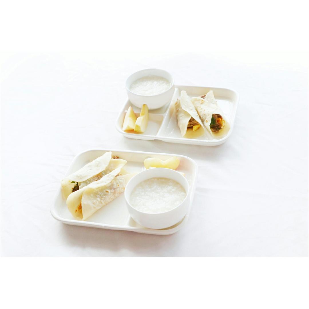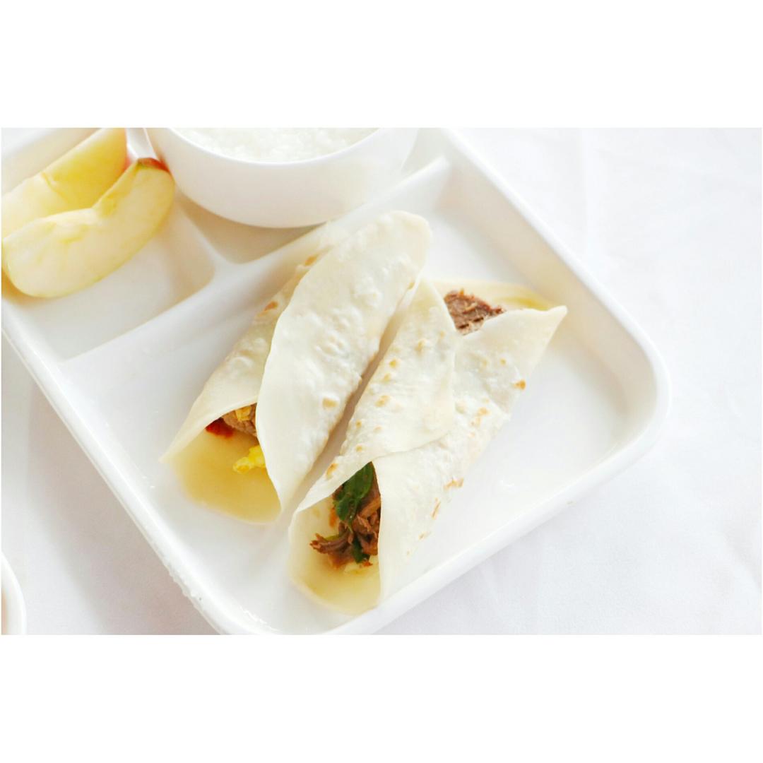 某天早餐,牛肉卷饼和白粥