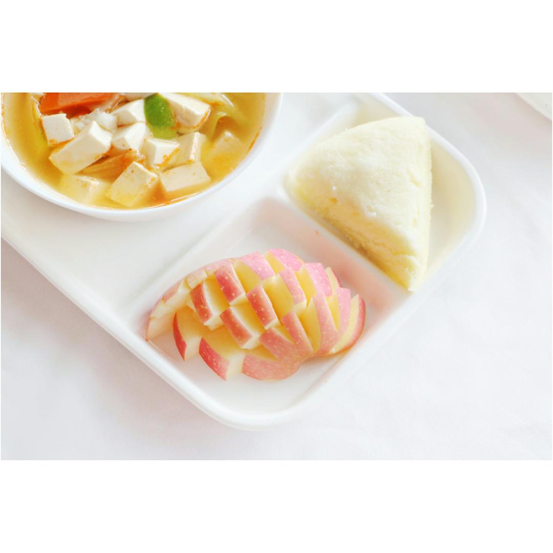 某天早餐,杂蔬汤,小米糕和苹果