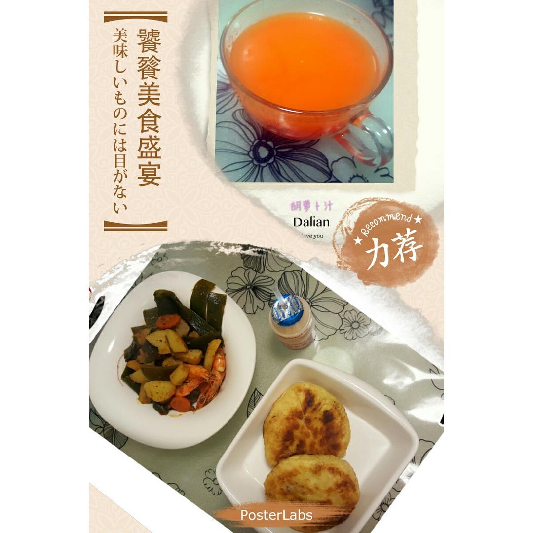 红糖烧饼+虾煲+胡萝卜汁
