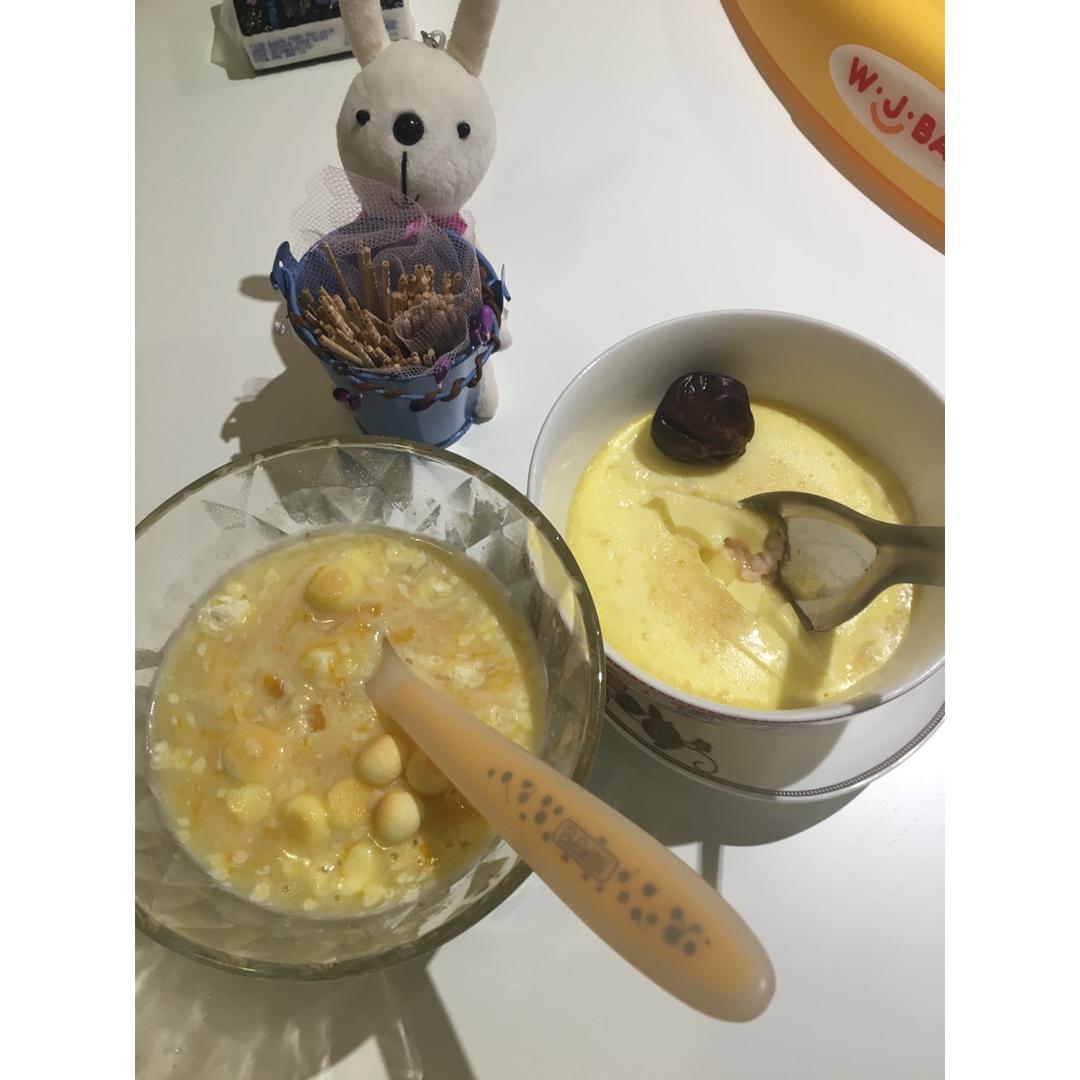 芝士布丁配小馒头+虾泥蒸蛋羹